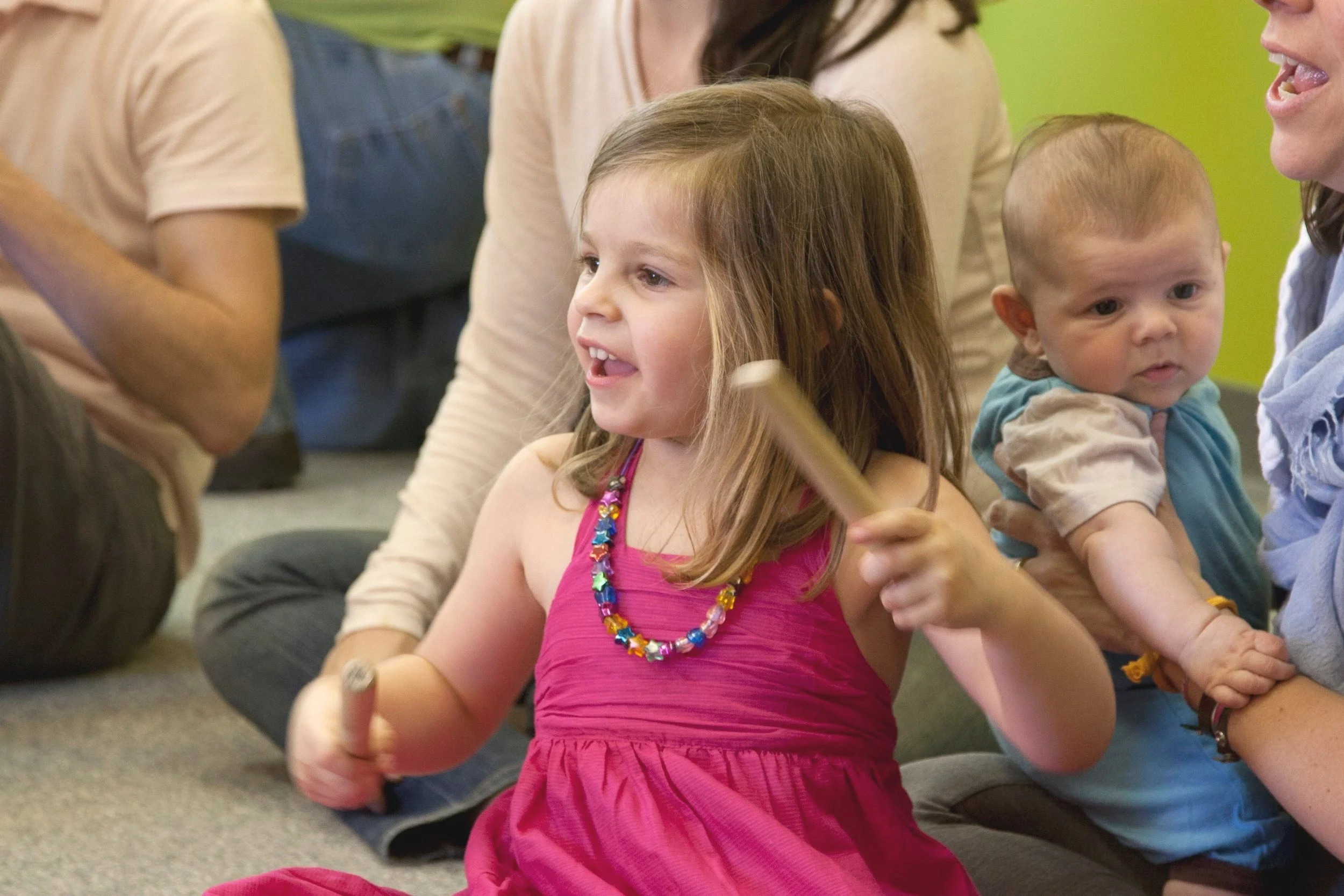 • (Almost) Everyone Participates: Caregivers actively participate alongside children, serving as musical models. We guide our children by being examples and allowing them to discover their own voice on their own time.
