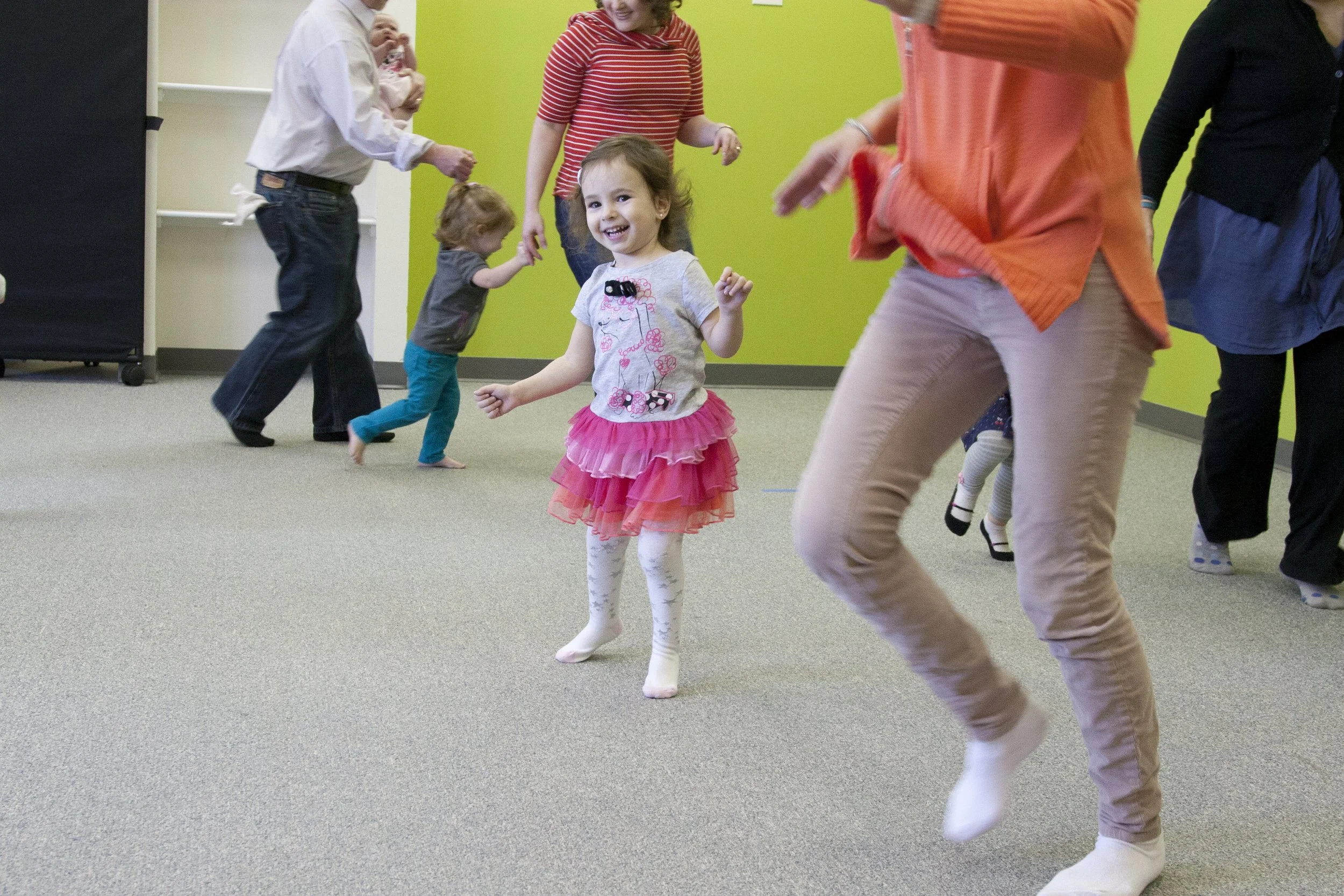The Musikgarten program involves the children, caregivers and teachers at equal levels. Everyone in the class participates in the activites. Rather than having a ‘leader’ to listen to, or dance with, children in the Musikgarten program are given the confidence to become their own music makers at their own pace. Additionally, through taking part in the classes themselves, parents and caregivers are able to extend the Musikgarten experience into the home and enjoy crucial bonding time that helps children build their confidence.